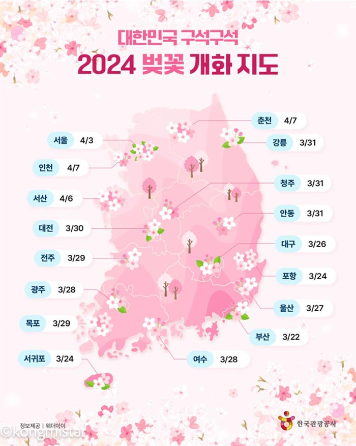 한국의 봄은 벚꽃이 만발하는 아름다운 풍경으로 유명합니다.